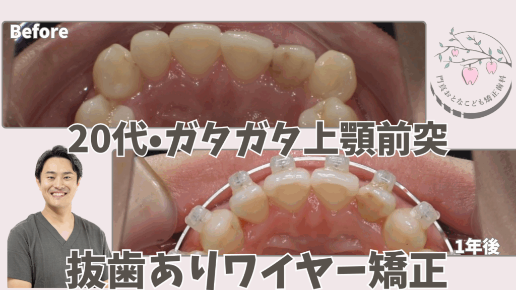 今回ご紹介するのは、前歯の出っ張り(上顎前突)とガタガタ(叢生)を気にされて来院された20代女性の患者様です。